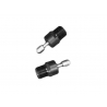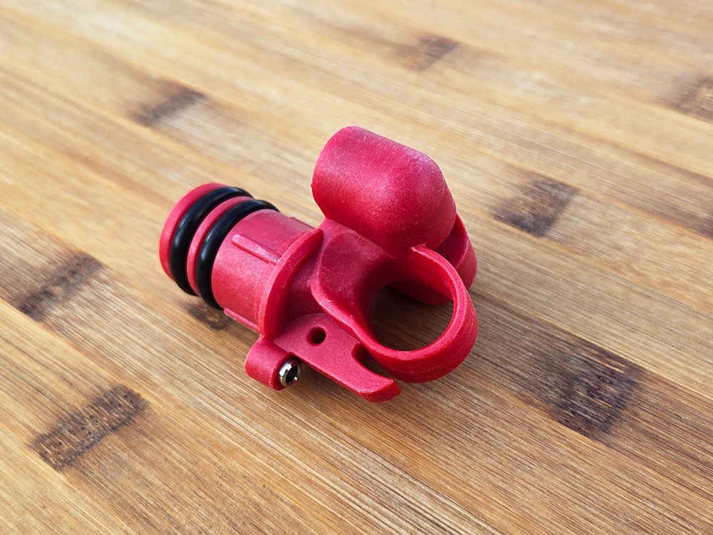 Closed muzzle for Cressi Cherokee, Comanche, Pacific and Geronimo spearguns. Muzzle insert peg outer diameter is 25mm-26mm with sacrificial ridges to easily reduce diameter if necessary. Fits the Cressi Cherokee, Comanche, Pacific and Geronimo spearguns, and other standard speargun tubes with 26mm inner diameter. Shooting line can be routed to the left or right. Built in stainless steel reel line guide/shooting line anchor. Accommodates three power bands, one standard circular and two threaded bands. Threaded holes are for premade bands with 14mm male threading or 14mm threaded band adapters (sold separately).